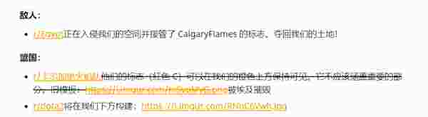 这场群体性的像素画图甚至演变成了一场‘战争’,CSGO板块的‘敌人’是埃及板块,必须从他们的手中夺回CSGO板块的土地,并且发帖时埃及板块的兄弟们已经将Calgary Flames(加拿大冰球战队)板块的图标侵占。版主也将Calgary Flames板块从盟友中划除,CSGO的另一位盟友dota2的像素图则将在CSGO的下方构建。