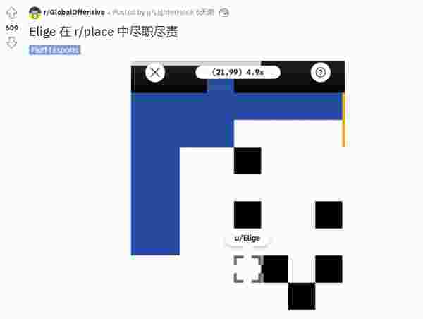 随后CSGO板块的像素大战正式开始,有网友发现EliGE鸡哥也和众多战友们一样站在一线劳作。