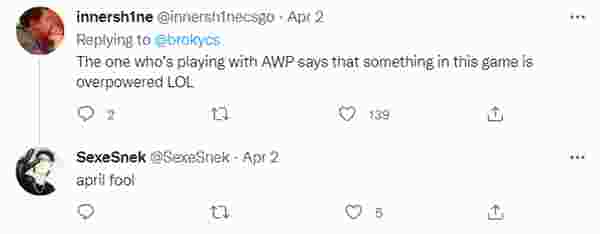 又又到一周星期五,哥们准时到位!5E尬活小编从墙外twitter和reddit中挖掘出快乐、逗趣的新闻整理成每周一刊的《GO圈真乱》栏目,为大家呈现CSGO的趣味时刻。上周正逢愚人节,同时EPL也进入到了淘汰赛阶段,一起来看看这周GO圈又发生了哪些趣事吧。