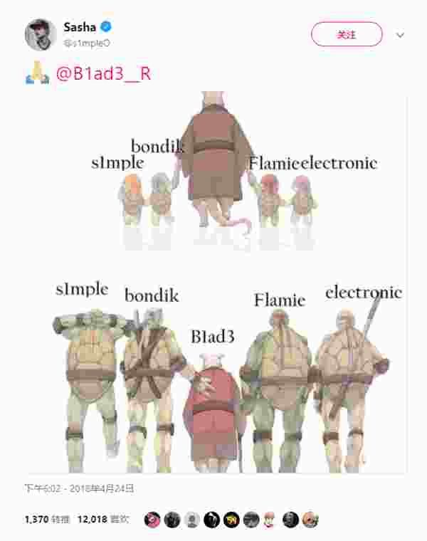 s1mple在DH马赛站结束不久发推了这张图,Blad3像是忍者神龟里的鼠老师,以前培养的选手现在都逐渐成为CIS地区一批顶尖枪手,现在31岁仍然坚持在职业赛场上,相信这就是对CS的一种热爱吧。