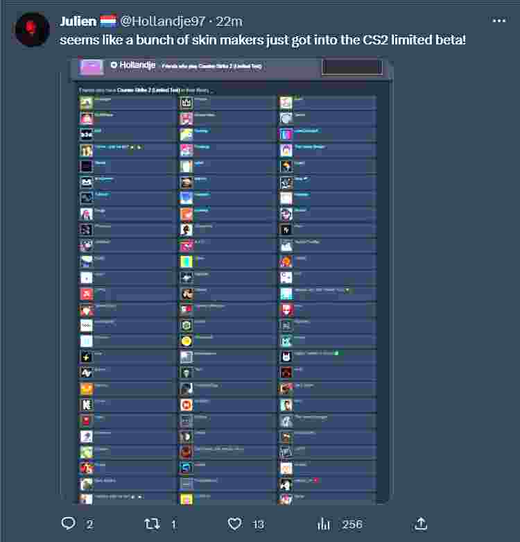 于是有心人发现,他所在的一个皮肤创作群组里大部分的作者都于今日获得了CS2的测试资格权限。