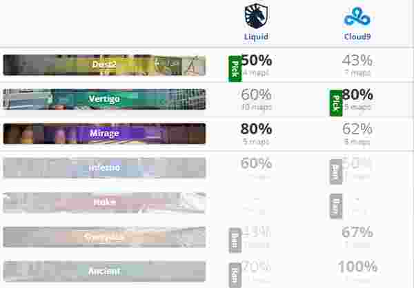 Cloud9 0-2 Liquid (Dust2 11-16; Vertigo 9-16)