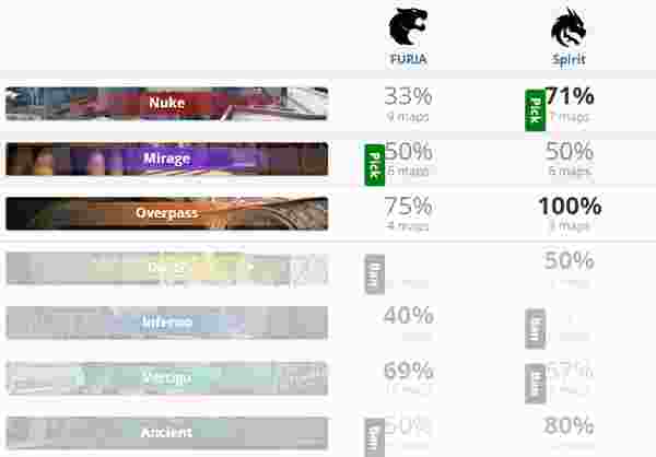 Spirit 1-2 FURIA (Nuke 16-12;Mirage 14-16;Overpass 10-16)