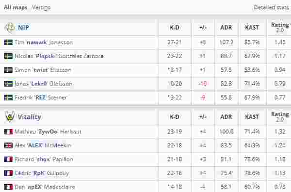 Vitality vs NiP 2-0(Vertigo 16-12;Nuke 16-10)