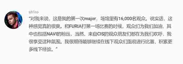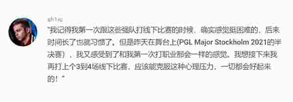 2021斯德哥尔摩major落下帷幕,赛后,在Gmabit的采访视频中,狙击手 sh1ro 分享了他在第一次major之旅中的感受。
