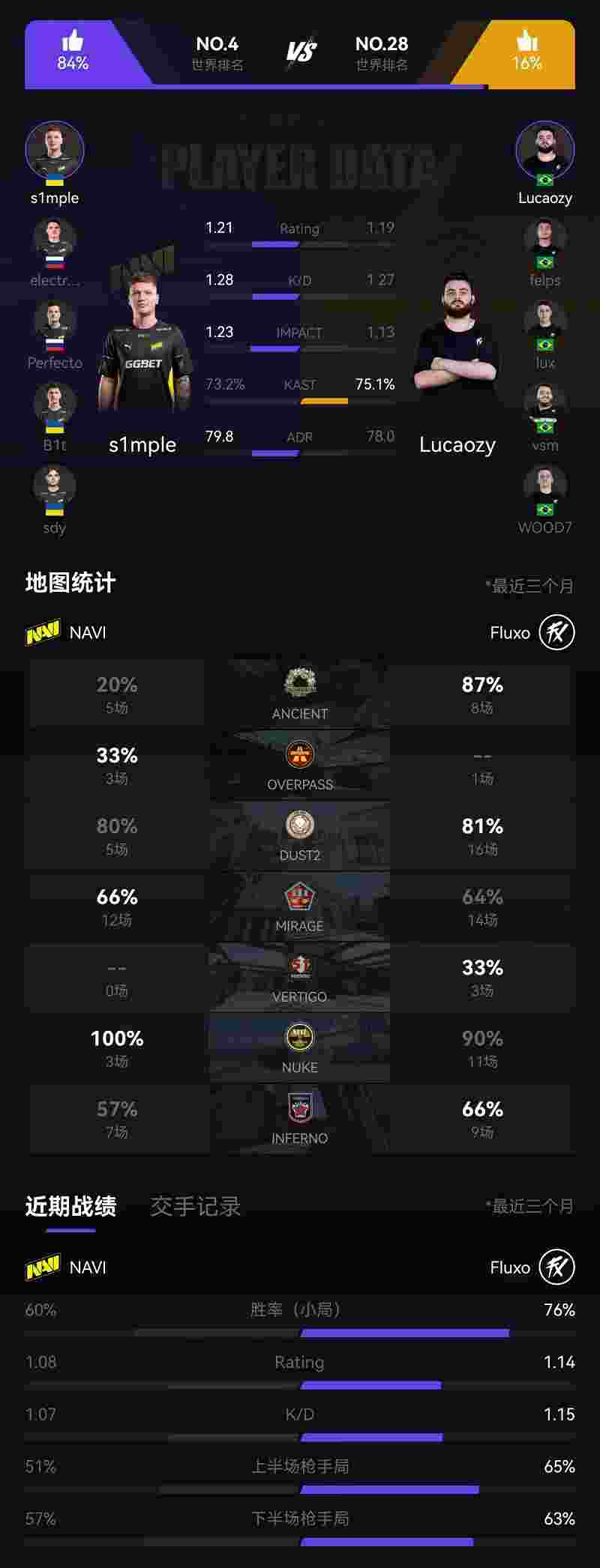 NaVi首先将去除Vertigo,选择Mirage;Fluxo可能去除Overpass,选择Ancient。而Nuke可能将成为两队的决胜图。