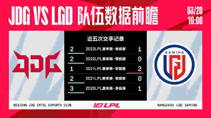 北京时间3月20日,2023LPL春季赛第十周首日比赛JDG VS LGD即将打响,LPL官方也给出了两队的具体数据。