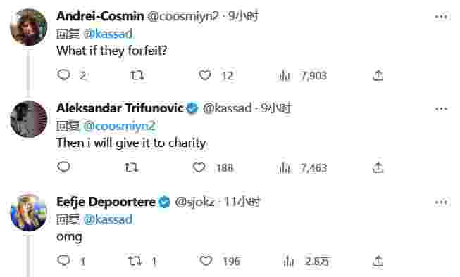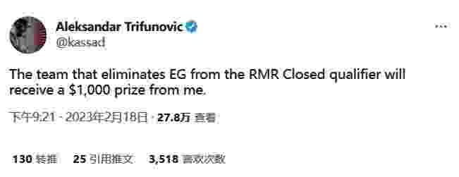 Aleksandar Trifunović|kassad在个人推特上发起了一场悬赏令,只要有队伍可以把