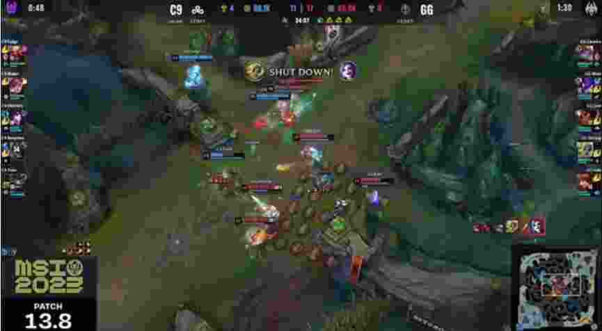 北京时间5月14日晚,2023MSI季中冠军赛胜败分组赛败者组第一轮的第二场比赛为万众瞩目的“北美LCS内战”——"北美之光"一号种子C9、二号种子GG重演今年LCS春决!C9完全复刻了春决“剧本”,在比赛中展现出技高一筹的运营和抓机会能力,最终有惊无险3-1淘汰GG,将在败者组第二轮直面GEN!