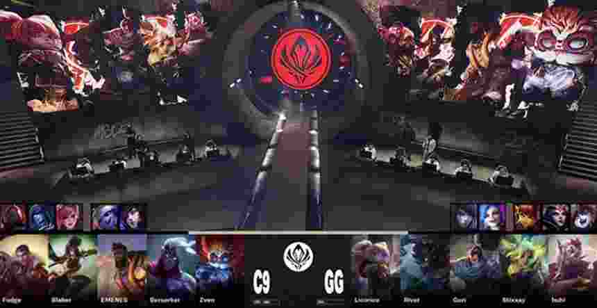 GG的中期节奏哑火,无奈目送C9控下土龙加第二只先锋。大龙出生前C9完全掌控了下半张地图的视野,GG在下路二塔前由波比传送绕后尝试留人,奎桑提也交传送落地,掩护队友全身而退,双方经济差来到整1万。手握巨大优势的C9却逐渐放缓了节奏,GG得以在中路集火带走了杰斯,作为交换C9“听牌”炼金龙魂。24分钟C9抱团入侵GG上半野区,抓死了波比之后回身开大龙,可是没有人阻止大树,导致River的大树闪现下龙坑抢到了大龙无憾倒地~C9终于回过神来,慢慢地磨掉三路二塔,并且解锁了炼金龙魂。最终C9抱团rush掉远古巨龙,打出0换5团灭GG一波结束比赛,有惊无险3-1淘汰GG!