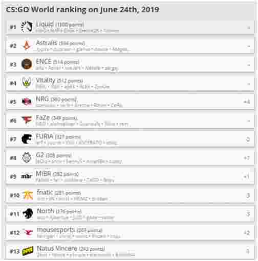 除了在ESL One克隆夺冠的Team Liquid之外,还有一支王朝强队备受瞩目:2019的A队可以说是道路坎坷,在大赛中接连失利,就最近来说Astralis(A队)不仅在EPL上被Liquid淘汰、在本届ESL半决赛上也是被Vitality轻松拿下,从几张地图的比分上看,A队都以大比分落败,这是否一个信号?A队已经日暮西山了?从6月24日的HLTV排名上看,群雄割据,各大强队都占有自己的一席之地,准备冲击柏林Major,当然他们面对的最大阻碍,应该还是intel大满贯获得者、刚刚引入2K的Liquid。