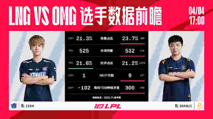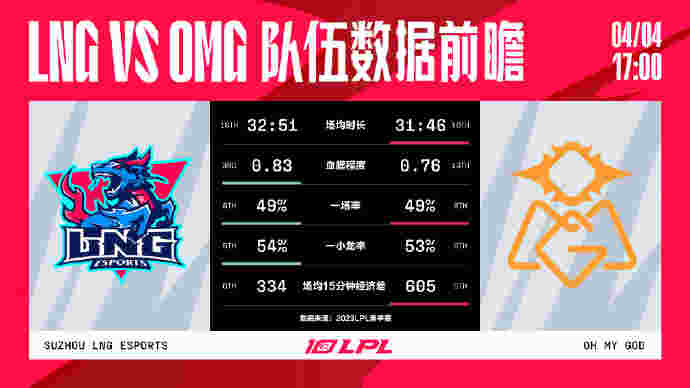 北京时间4月4日,2023LPL春季赛季后赛最后一个四强席位争夺战即将开打,究竟是LNG延续常规赛的良好状态还是OMG黑马逆袭?下面是两支队伍的具体数据。