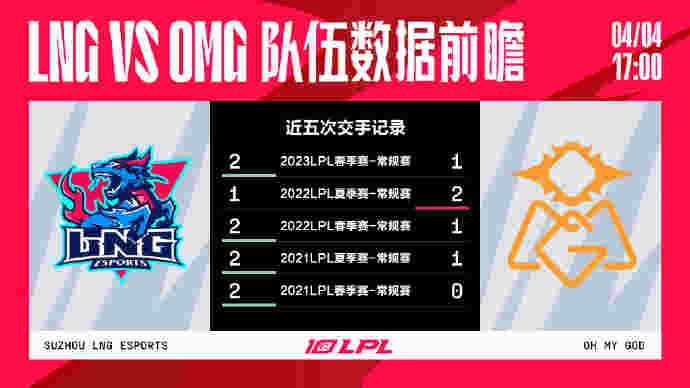 LNG在与OMG的近五次交手记录中,获胜了四次,占据着心理优势。而OMG在4月2日的比赛中战胜TES,势态正猛,本次交手势均力敌。
