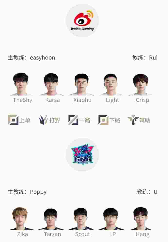 WBG:上单TheShy、打野Karsa、中路xiaohu、下路Light、辅助Crisp
