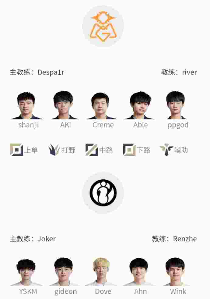 IG:上单YSKM、打野gideon、中路Dove、下路Ahn、辅助Wink