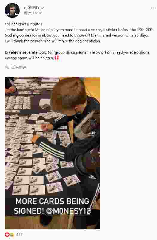 “Major前,所有选手都要在19-20日前发出他的签名设计,但是我毫无头绪,因此你需要在三天内得出一个完成版本。我会好好感谢那个做出最帅签名贴纸的人的。”