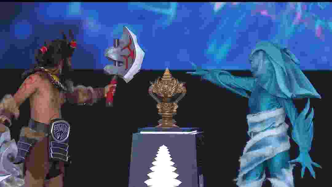 决赛日主舞台也是精心为观众们准备了极富“东南亚特色”的COS舞蹈,其中兽王和水人的COS则是亮瞎观众们的眼睛(怪不得兽王水人本次比赛老是暴毙,身板不行啊)。不过有一说一,这个东南亚特色还是真的凸显了,这个冠军奖杯也算是很有味道了。