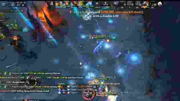 7分钟,冰女支援下路,侧翼绕出来,将装幻象装不动的幻影长矛手冰住,末日跟上大招将幻影长矛手击杀。同时Spirit辅助游中路,以前后包夹的站位让风行者无法逃出控制圈击杀。Spirit杀人推掉了夜魇中路一塔。