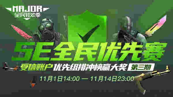 燃庆斯德哥尔摩Major,全民优先赛第三期于11月1日再度来袭!全民参赛,人人有奖,优先组排冲榜赢豪礼 ,最高赢取AK-47 | 黄金藤蔓 、骷髅匕首(★) | 屠夫 等千元饰品。