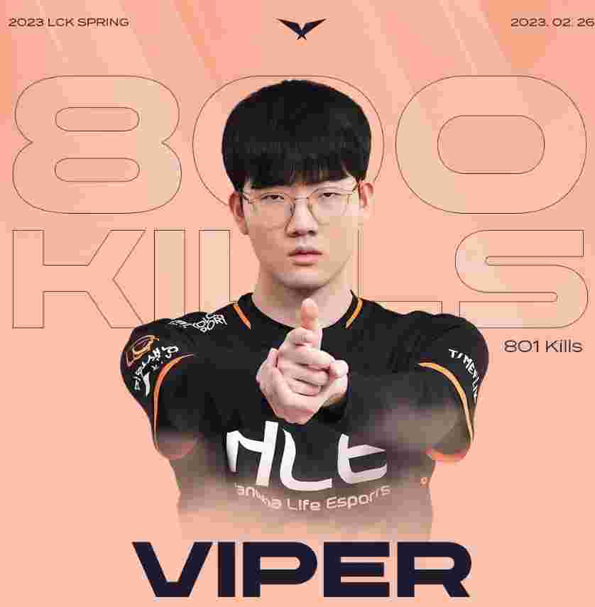 北京时间2月26日,LCK赛区春季赛结束了HLE与KDF的对局,其中HLE直落两盘拿下胜利,Viper选手也是在比赛中多次击杀对方达成LCK800杀成就。