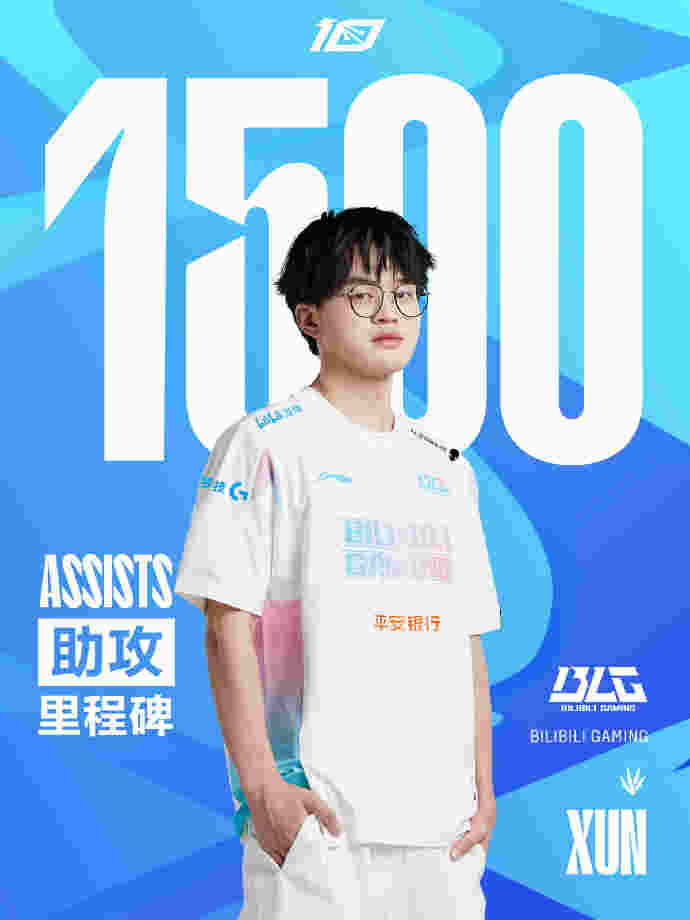 北京时间6月12日,在今日BLG对阵AL的比赛中,Xun使用卡兹克达成了在LPL的第1500助攻,是打野位第21位达成该成就的选手,恭喜Xun!