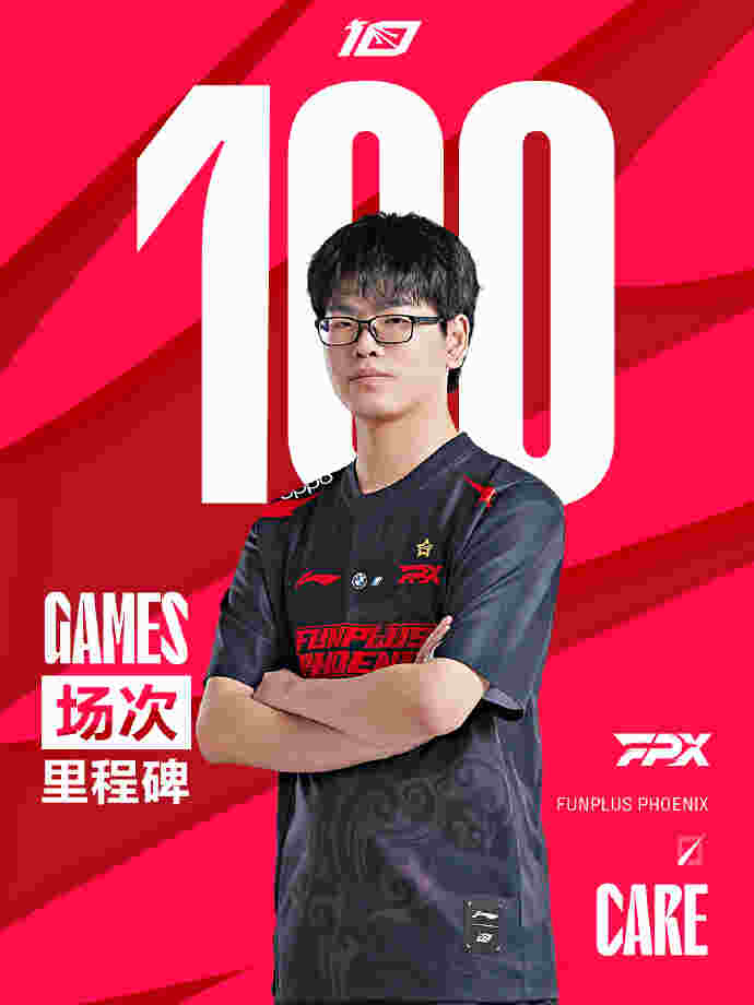 北京时间3月17日,2023LPL春季赛正在进行FPX与AL的对局,其中FPX中单Care达成了在LPL登场100场的成就,是中单位第34位达成此成就选手,恭喜Care!