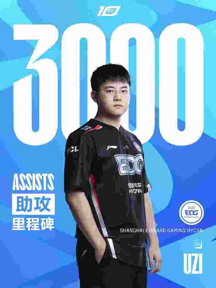 北京时间6月28日,在今日EDG对阵UP的比赛中,Uzi用卡莎达成了在LPL的第3000助攻,是下路位第3位达成该成就的选手,恭喜Uzi!