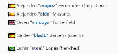 这支队伍于2021年初签下了smooya,蜜月期中英国狙击手带领队伍一度来到世界排名22位,但是随后他们慢慢下滑,并在7月初跌至66位。现在队伍中仅仅剩下两名长合同选手alex和mopoz,还有他们刚刚签下的“大腿级别”选手smooya。