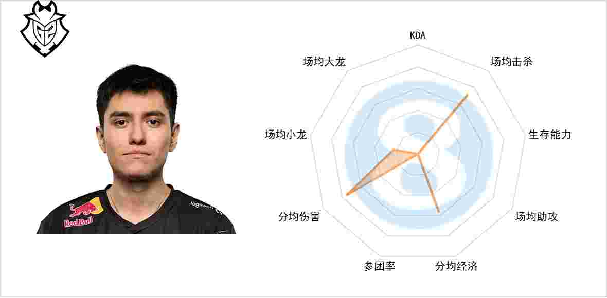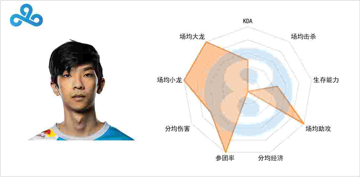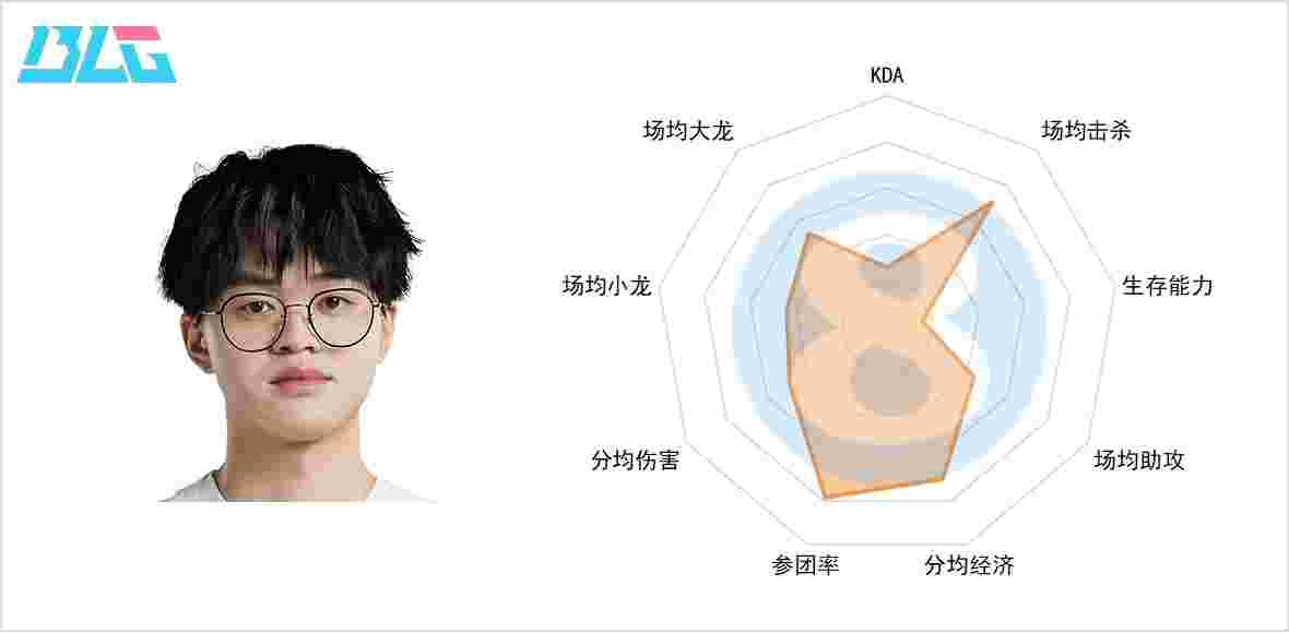 *本雷达图数据范围:最大格数设置为位列第一选手的数据数值,最小值为倒数第一数值。