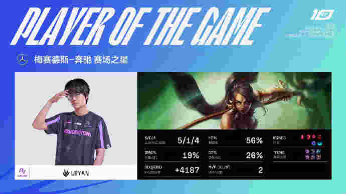 Leyan打的很有进攻性,第3分钟,波比来上路绕后gank直接壁咚,纳尔交闪难逃一死,奎桑提顺利收掉第一个击杀。