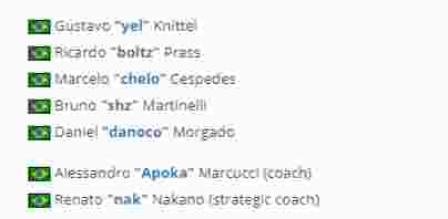 目前,MIBR男子队伍阵容如下: