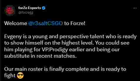 forZe宣布,他们已经签下了前VP青训队的r3salt。这支俱乐部终于在三个月后补完了他们的阵容。