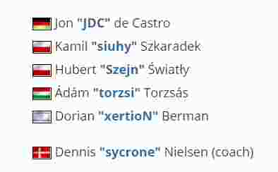 来自Izako Boars的波兰二人组siuhy和Szejn被招入麾下; 前Budapest Five的狙击手torzsi和前Unicorns of Love选手JDC也被收入囊中;而最后一块拼图则是16岁的以色列选手xertioN,去年他曾短暂效力于KPI,是队伍中的“毛头小子”。