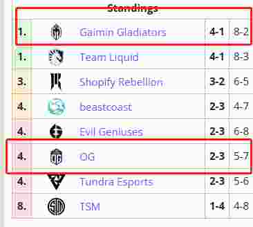 前五日的比赛过后,GG战队目前与Liquid并列第一,在新版本到来之前,GG作为上届major冠军的统治力还在,不出意外,GG已经拿到了进入下一轮的门票,而作为欧洲区的老大哥OG战队,大比分2-3,如果这次不能获胜的话,OG可能已经离回家不远了