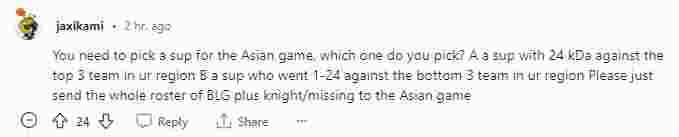请把BLG整个名单带着KNIGHT和MISSING一起去亚运会吧。”