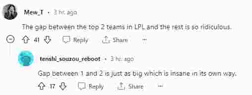 “LPL最顶级的两支队伍和其他队伍的差距实在是太离谱了。”