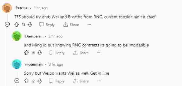 “TES应该把WEI和BREATHE从RNG手里抢过来,他们现在的上路线太弱了。”