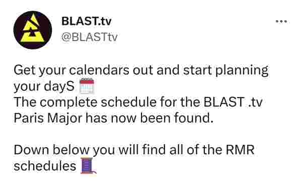 BLAST温馨提示:精彩纷呈的RMR即将到来,快点调好你的闹钟,观看你喜欢的队伍间的对决吧!