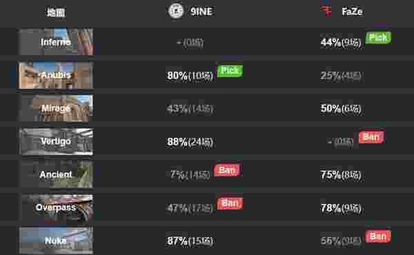 全面爆发的FaZe很快收下了赛点,而9INE经过连续的丢分已经没有了状态与FaZe抗衡。FaZe很快以16-8。