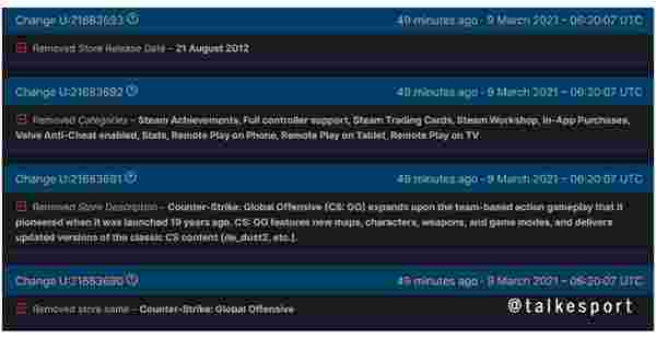 我们只希望这是一次乌龙事件,或者有人未经允许访问了Steam的商店管理,或者是Valve想要修改CSGO商店页面的相关内容。从下面的截图中可以看到被删除的信息。