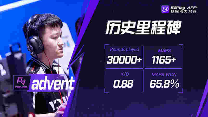 advent自2014年出道以来,一直征战在中国CS:GO最一线的舞台,9年职业生涯至今他已在职业赛场完成1165张地图的对抗,尽管个人的击杀数据不高,但在advent的带领下,他的队伍依然有65.8%的地图胜率。不管是KD数据(比肩HooXi、Karrigan)还是地图胜率,advent都符合一个优秀指挥在职业赛场上的表现。