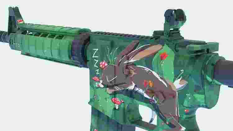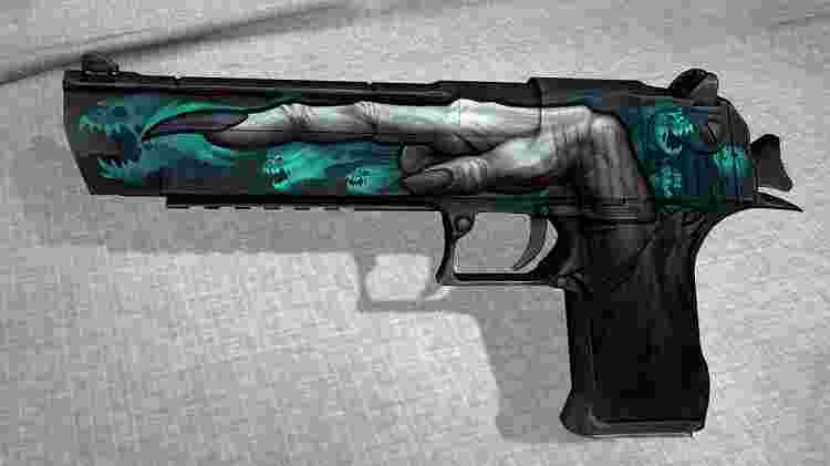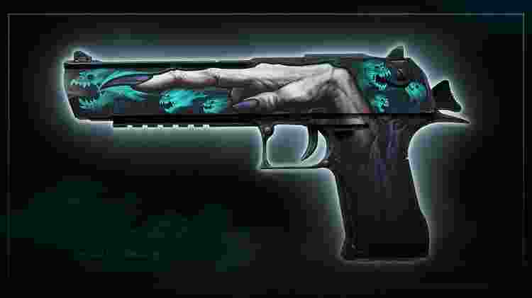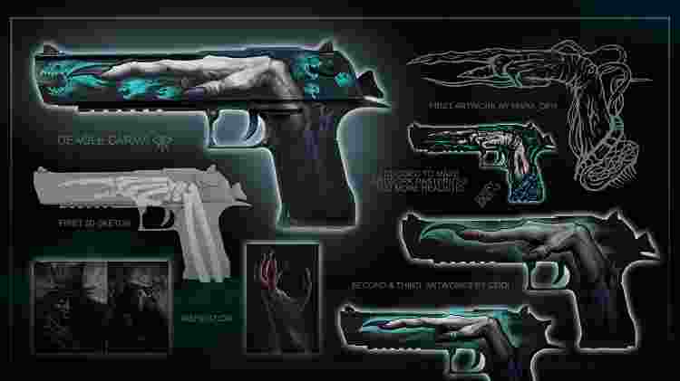 最后隆重推出Hexeth创作的沙鹰——死亡一指。作者在描述中称,这个作品的创作灵感来自于恐怖小说中的女巫,手指指向之处便能夺人性命,这个皮肤在社区里人气颇高,是近期难得的佳作:
