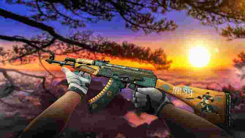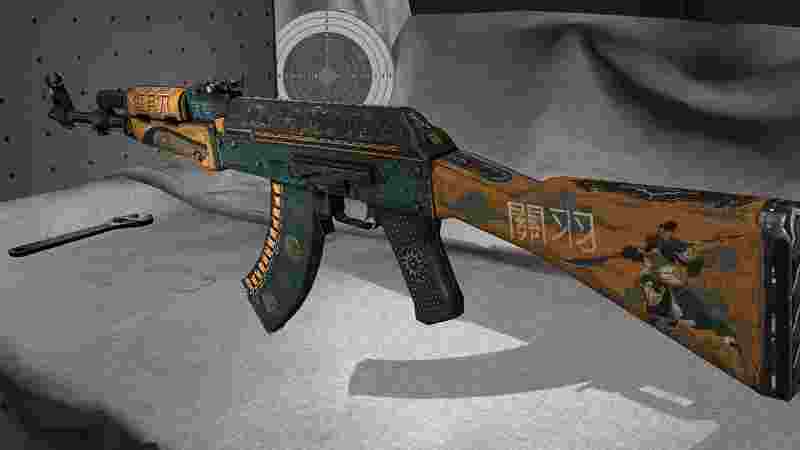 这位作者直接在AK上刻了关羽和青龙偃月刀的图案,枪管处有“四十七”字样
