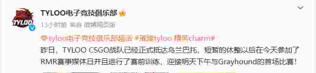 TYLOO官博也公布了相关内容,表示队伍正在积极备战首场与灰狗的比赛。