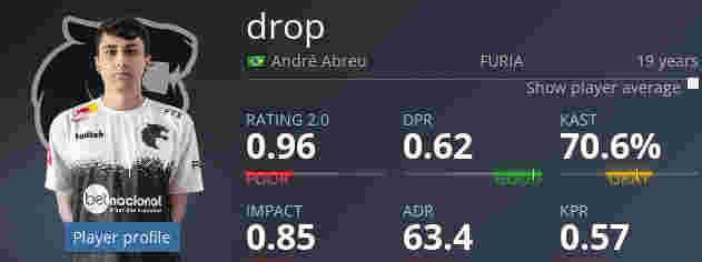 今年19岁的drop是在2021年8月顶替honda加入队伍的,而这次变阵也是FURIA自2022年1月份引进saffee以来第一次人员变动。在效力FURIA期间,这位小将并未拿出令人信服的数据,自然也未能在成绩上帮助队伍更进一步。