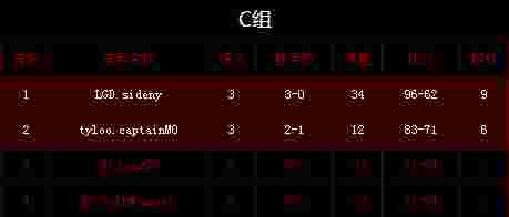 在C组的比赛中,首先MO均以2-0战胜了LongGG与YorkMonster,而Sidney也同样以2-0击败了后两者。于是乎,小组头名的争夺战在MO与Sidney之间展开。在此决胜之际,MO却突然枪法失准,先是在手枪局以5-16大比分落败,接着又在长枪局以14-16惜败,因此只能屈居小组第二。不过,两位选手的“决战”气氛也是非常和谐,MO在手枪局中直接公屏打字调侃:“哈哈,打不过。”
