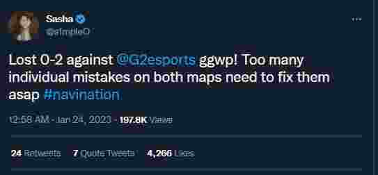 粉丝们问s1mple他们是怎么输给G2的。s1mple表示: