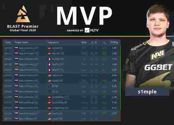 Aleksandr "s1mple" Kostyliev,这位来自乌克兰的旷世巨星带领NaVi在BLAST Premier全球总决赛中一路连胜,他也凭借着自己出色的发挥获得了个人最高奖项,为自己的2021年开了好头。