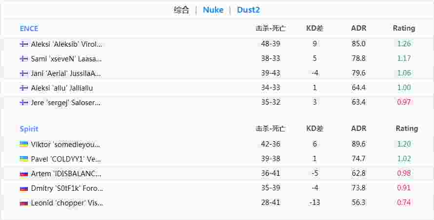 同为第一轮比赛的ENCE就无比轻松的赢下了比赛,在对阵Spirit的两张地图中xseveN和Aleksib两人化身杀神不断收割人头屡次刷屏。