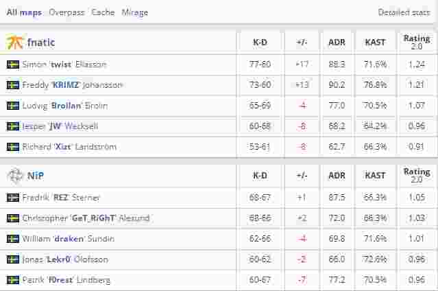 也不知道是不是小编昨天预测了NIP会以2-1的成绩击败对手所致,今天的Fnatic众人状态出乎意料的好。小将Brollan、大光头KRIMZ纷纷站了出来,就连平时悄无声息的twist都仿佛加了个Zz,枪刚人稳的不得了。